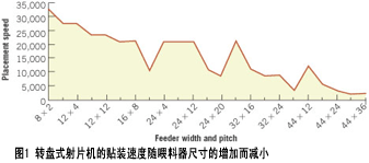 轉盤式射片機存在的固有問題,與以機器設計基本原理為基礎的速度和精度有關。隨著器件尺寸的變化,轉盤速度進而貼裝率必須改變,以便與不同元器件和喂料器的結構相適應。盡管圖1看上去令人費解,實際情況可能還要糟糕。圖中表示出的一個使人迷惑的事實是,如果在轉盤上出現一個大的元器件,所有其它元器件的貼裝速度也必須慢下來;否則,貼裝的可靠性就會受到影響。實質上,轉盤上的其他元器件都受最慢的元器件的處理速度控制。這種情況由于在大間隙機械傳動的帶盤喂料器上要求的多檢索作業而進一步加劇,如圖1中凹陷的低谷部位所示。記住以下這點也很重要,傳統射片機主要受帶盤或散裝元器件供料的限制,這是柔性貼裝的關鍵影響因素。