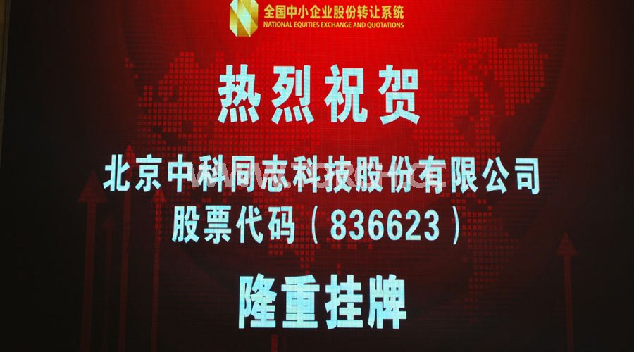 2016年5月4日,北京中科同志科技股份有限公司(以下簡(jiǎn)稱“同志科技”)掛牌儀式在北京金融街全國(guó)中小企業(yè)股份轉(zhuǎn)讓系統(tǒng)有限責(zé)任公司隆重舉行。同志科技成為中國(guó)一家以貼片機(jī)為主營(yíng)業(yè)務(wù)的新三板掛牌公司。