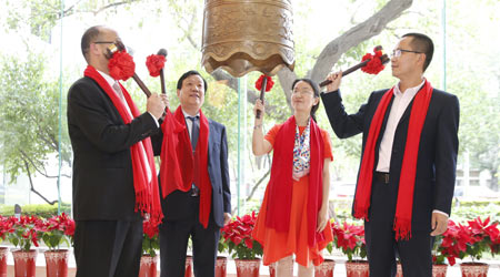 總經(jīng)理鄧燕女士代表同志科技敲響開市寶鐘