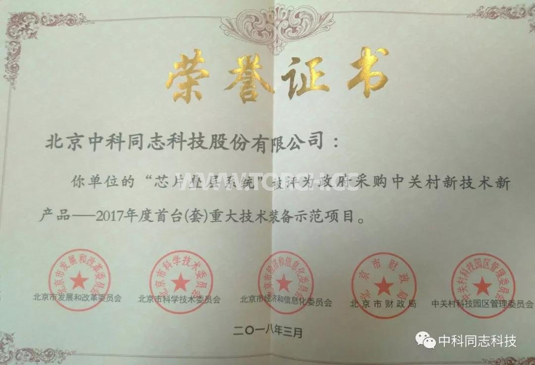 2017年度中關(guān)村國家自主創(chuàng)新示范區(qū)首臺(套)重大技術(shù)裝備示范項目技術(shù)評審工作已經(jīng)結(jié)束,北京中科同志科技股份有限公司研制的“芯片疊層系統(tǒng)”通過專家評審,被評為政府采購新技術(shù)新產(chǎn)品——2017年度首臺(套)重大技術(shù)裝備示范項目。